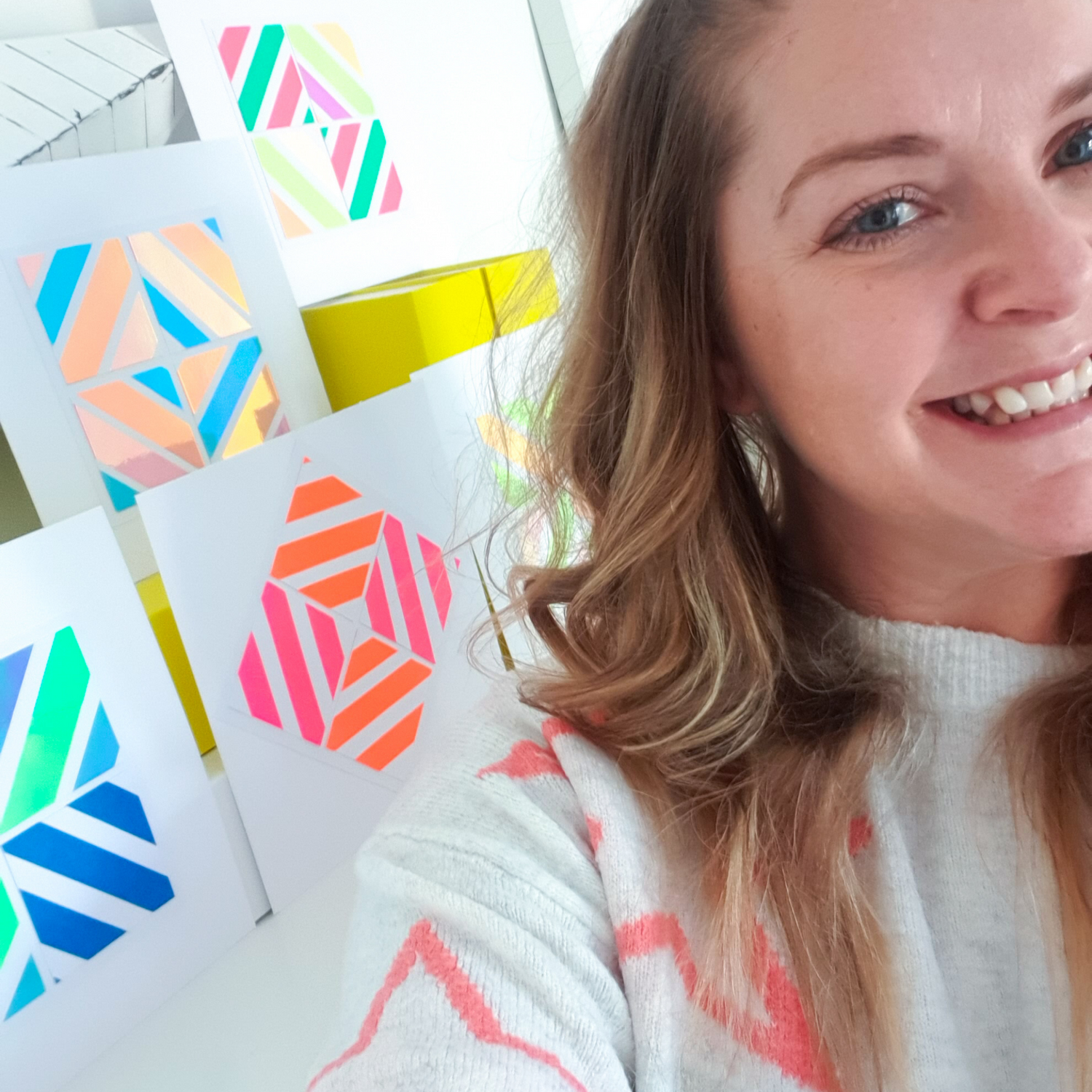 My name is Cherie and I am an independent artist and pattern designer. I create colourful abstract geometric inspired art using a vibrant mix of neon brights, soft pastels and shiny holographic colours. All of my designs are a joyful expression of colour, light and pattern, designed to inject a fresh and bright contemporary pop of colour and energy into your favourite spaces.