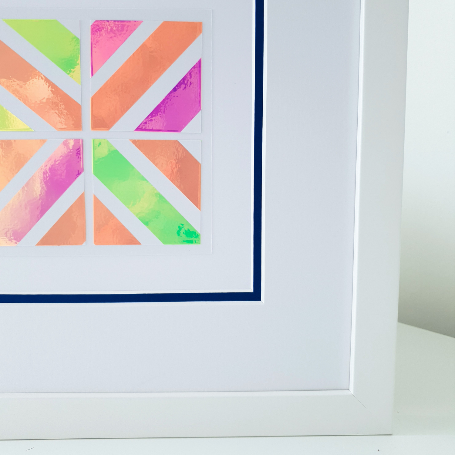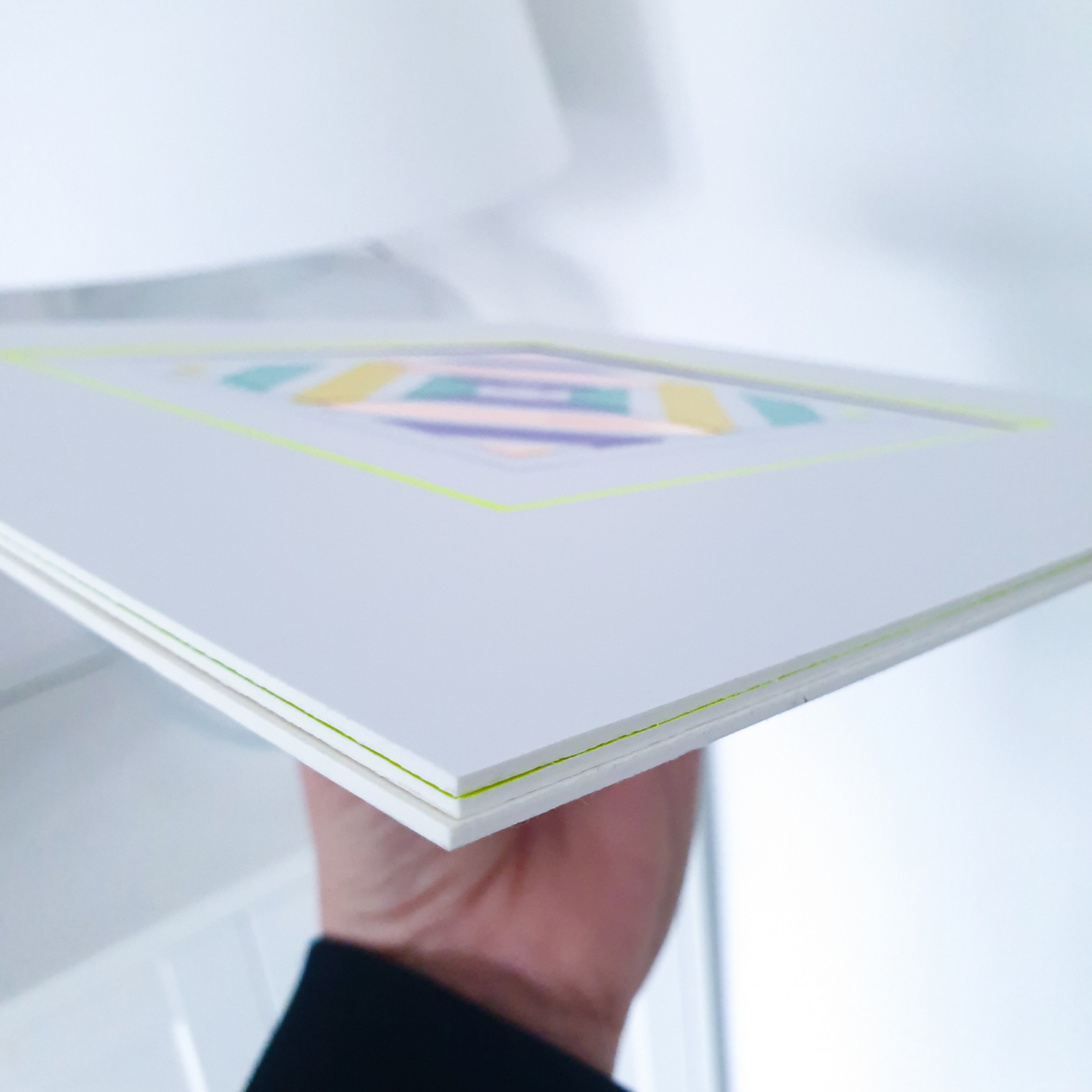 When creating my art pieces, I wanted the framing to be nice and easy for you so each and every piece will arrive already pre-mounted using a double neon mount (in your chosen colour) and with a sealed backing board at the back. This means all you need to do once it arrives in your home, is choose your favourite frame (in the matching 8x8" or 12x12" size) and slot your piece of art straight in.