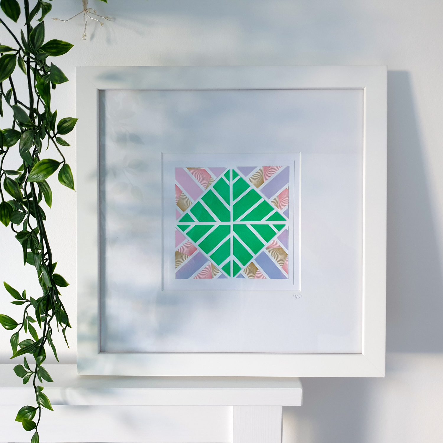 This 30 x 30cm piece is a beautiful expression of light, colour and pattern. Designed to inject a fresh and contemporary burst of botanicals in an abstract geometric twist, this original piece of wall art is guaranteed to make a statement and draw your eye wherever it hangs.